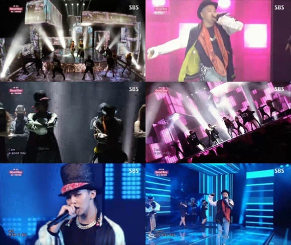 지드래곤과 태양은 14일 오후 방송된 SBS '인기가요'에 출연해 '굿 보이' 무대를 꾸몄다.
