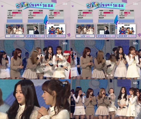 에이핑크는 14일 오후 방송된 SBS '인기가요'에서 'LUV'로 1위에 올랐다.