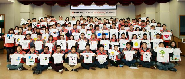 이번 ‘희망T캠페인’에는 한국타이어 본사와 대전, 금산공장 등 동그라미 봉사단 임직원 1100여명이 참가해 희망 티셔츠 그리기와 엽서쓰기 등의 활동을 통해 꿈과 희망을 전달하는 이웃사랑 실천에 동참했다. ‘희망T캠페인’은 재해구호단체인 '희망브리지'가 주관하는 것으로 이날 직원들이 직접 그린 티셔츠는 영양결핍 치료식과 함께 자연재해 피해를 입고 삶의 터전을 잃은 전 세계 기후난민 어린이들에게 전달된다.