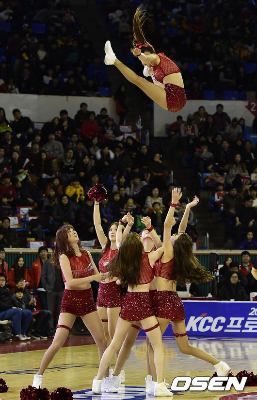 14일 오후 서울 잠실학생체육관에서 열린 '2014-2015 KCC 프로농구' 서울 SK와 창원 LG의 경기, 2쿼터 치어리더들이 멋진 공연을 펼치고 있다.