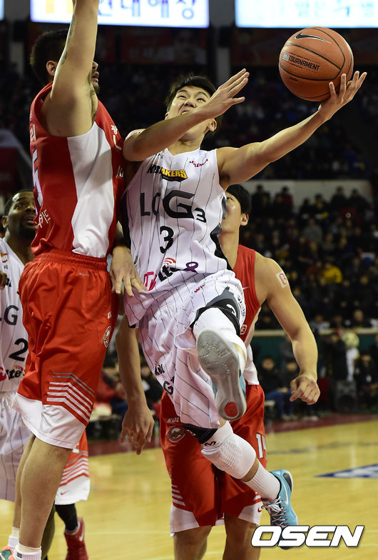 14일 오후 서울 잠실학생체육관에서 열린 '2014-2015 KCC 프로농구' 서울 SK와 창원 LG의 경기, 3쿼터 LG 유병훈이 슛을 시도하고 있다.