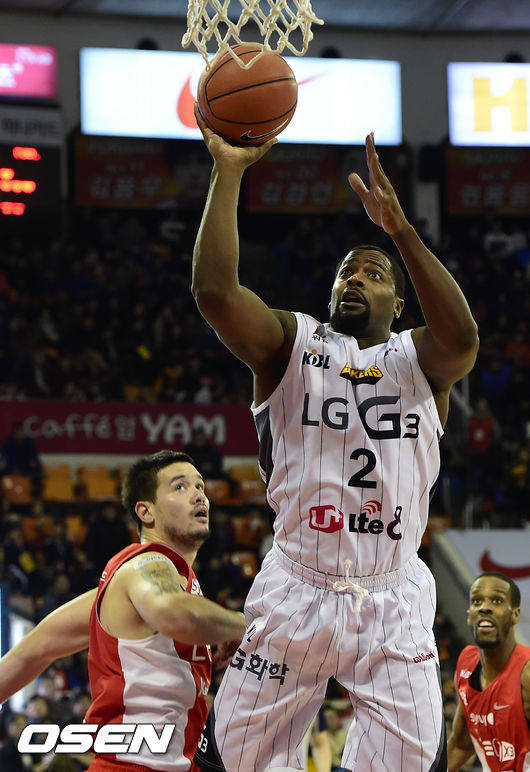 14일 오후 서울 잠실학생체육관에서 열린 '2014-2015 KCC 프로농구' 서울 SK와 창원 LG의 경기, 3쿼터 LG 메시가 슛을 시도하고 있다.
