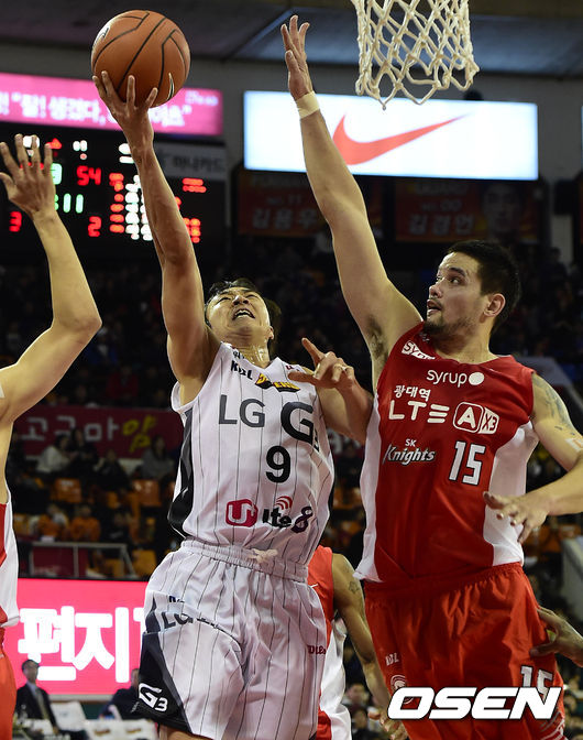 14일 오후 서울 잠실학생체육관에서 열린 '2014-2015 KCC 프로농구' 서울 SK와 창원 LG의 경기, 3쿼터 LG 김영환이 레이업슛을 시도하고 있다.