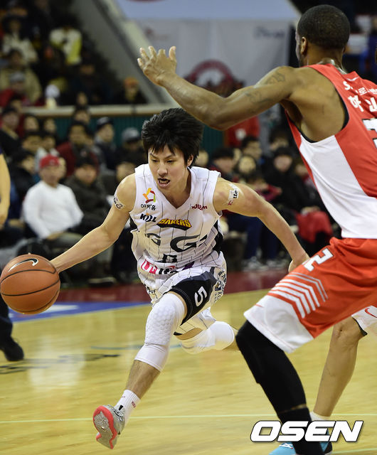 14일 오후 서울 잠실학생체육관에서 열린 '2014-2015 KCC 프로농구' 서울 SK와 창원 LG의 경기, 3쿼터 LG 김시래가 돌파를 시도하고 있다.