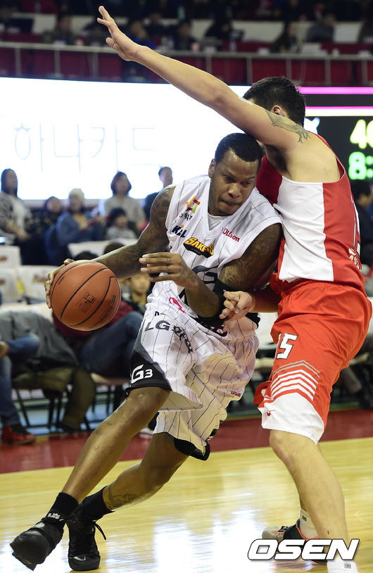 14일 오후 서울 잠실학생체육관에서 열린 '2014-2015 KCC 프로농구' 서울 SK와 창원 LG의 경기, 4쿼터 LG 제퍼슨이 돌파를 시도하고 있다.