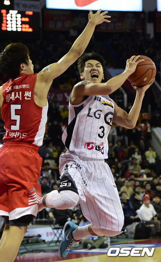 14일 오후 서울 잠실학생체육관에서 열린 '2014-2015 KCC 프로농구' 서울 SK와 창원 LG의 경기, 4쿼터 LG 유병훈이 슛을 시도하고 있다.