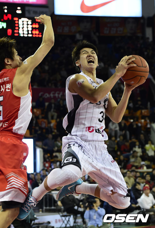 14일 오후 서울 잠실학생체육관에서 열린 '2014-2015 KCC 프로농구' 서울 SK와 창원 LG의 경기, 4쿼터 LG 유병훈이 슛을 성공시키고 있다.