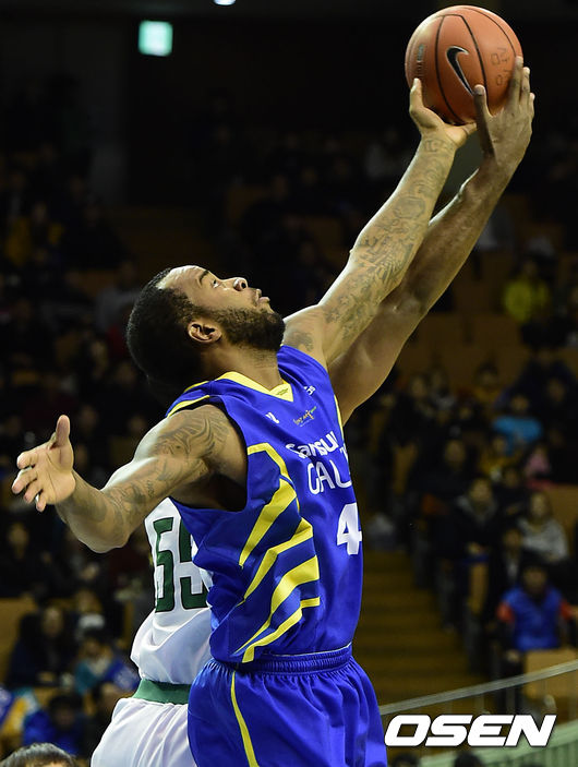 14일 오후 서울 잠실실내체육관에서 열린 '2014-2015 KCC 프로농구' 서울 삼성과 원주 동부의 경기, 1쿼터 삼성 라이온스가 리바운드를 시도하고 있다.