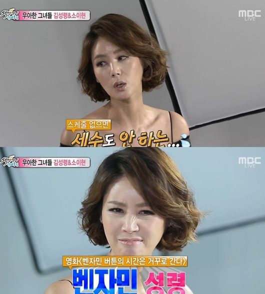 리포터가 김성령의 시간은 거꾸로 간다며 "벤자민 성령'이라고 하자, 김성령은 "나이가 늘수록 더 아름다워진다는 소리 듣기 좋다"고 말했다.