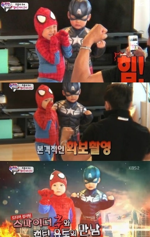 14일 방송된 KBS 2TV 예능프로그램 '해피선데이-슈퍼맨이 돌아왔다'에서는 할로윈을 맞아 사랑과 유토가 슈퍼히어로 복장을 입고 준비에 나서는 모습이 전파를 탔다.