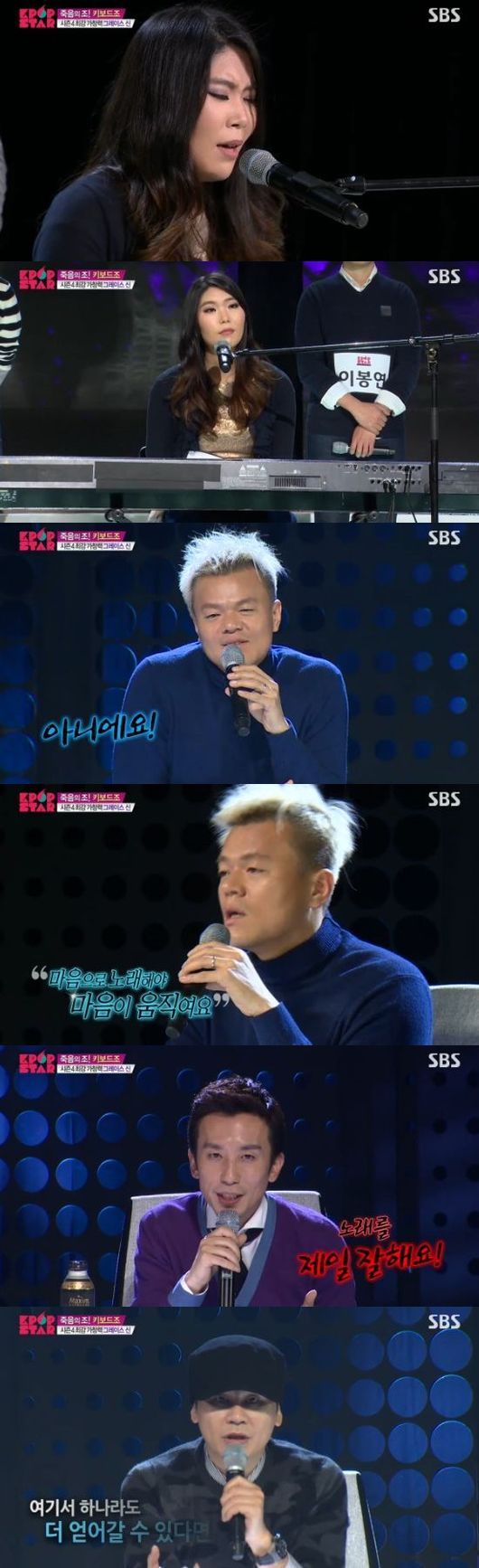무대는 순조로웠다. 그러나 박진영은 "거짓말처럼 들린다. 노래 잘한다는 건 안다. 절대로 테크닉으로 사람 마음을 움직일 수 없다"고 말했다.