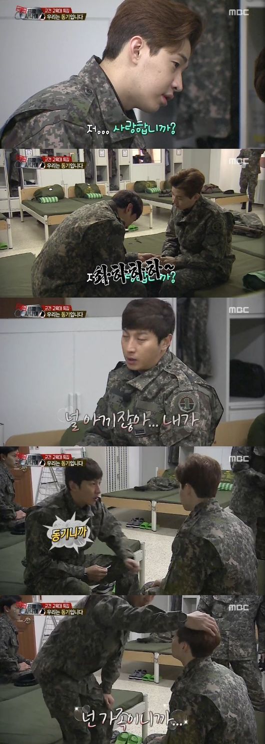헨리는 14일 오후 방송된 MBC 예능프로그램 '일밤-진짜사나이'(이하 '진짜사나이')에서 부상당한 곳을 치료해주는 박건형에게 "저 사랑합니까?"라고 물었다.
