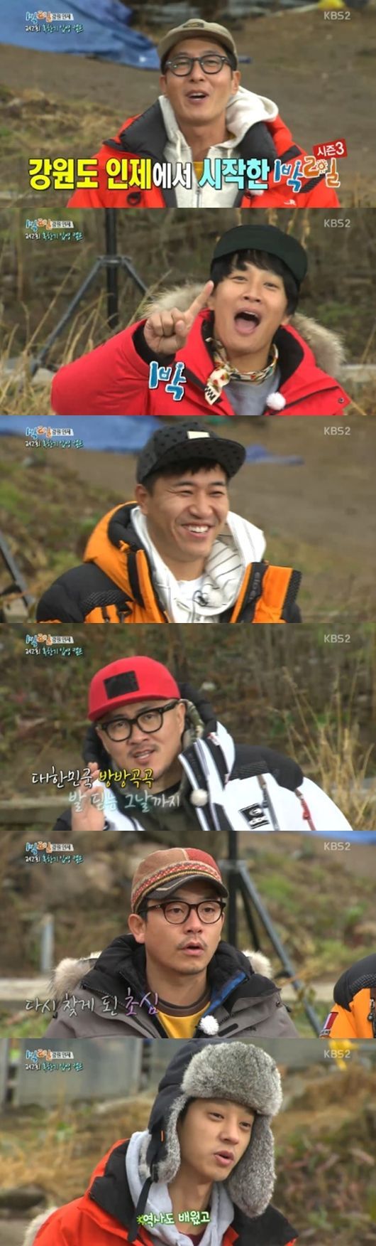 14일 방송된 KBS 2TV 예능프로그램 ‘해피선데이-1박2일’에는 시즌3 1주년을 맞아 강원도 인제에서 제2회 혹한기 입영 캠프를 진행하는 멤버들의 모습이 그려졌다.