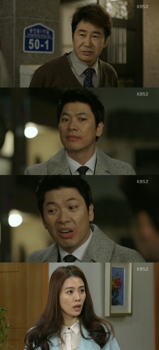 14일 방송된 KBS 2TV 주말드라마 ‘가족끼리 왜이래’에서는 태주(김상경 분)와 강심(김현주 분)의 애정행각을 목격한 중백(김정민 분)의 모습이 그려졌다.