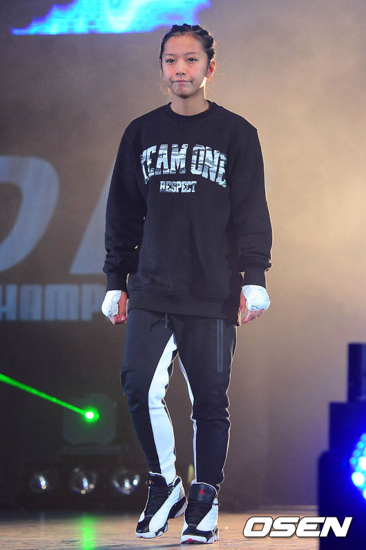 14일 오후 서울 방이동 올림픽공원 올림픽홀에서 열린 로드 FC 020 경기에 송가연이 소개되고 있다.