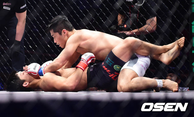 14일 오후 서울 방이동 올림픽공원 올림픽홀에서 열린 로드 FC 020에서 박형근과 한이문이 경기를 펼치고 있다.