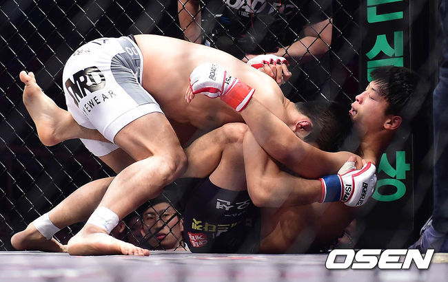 14일 오후 서울 방이동 올림픽공원 올림픽홀에서 열린 로드 FC 020에서 박형근과 한이문이 경기를 펼치고 있다.