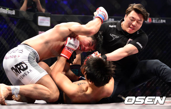 14일 오후 서울 방이동 올림픽공원 올림픽홀에서 열린 로드 FC 020에서 박형근과 한이문이 경기를 펼치고 있다.