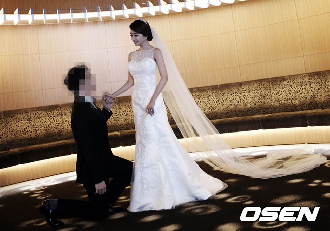 공개된 사진 속 김혜선 기상캐스터는  순백의 우아한 드레스를 입고 여신 자태를 뽐내고 있다./photo@osen.co.kr