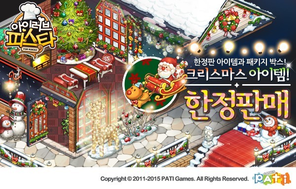 파티게임즈 레스토랑 경영게임 ‘아이러브파스타’가 다가오는 크리스마스를 맞아 출시 후 첫 크리스마스 아이템을 출시했다고 지난 12일 밝혔다.