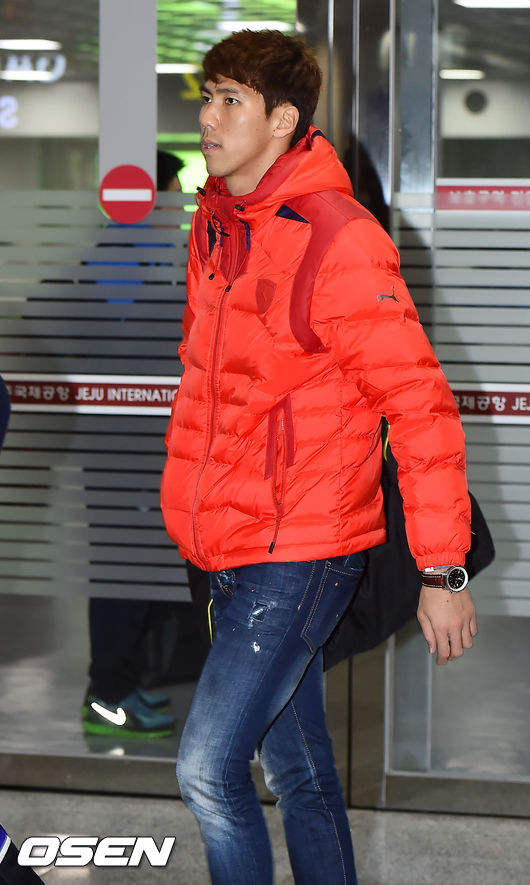 슈틸리케호가 15일 오전 제주공항을 통해 결전지에 입성했다. 김진현이 입국장을 통과하고 있다.