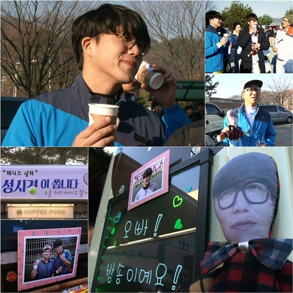 그 가운데 성시경이 팬들의 든든한 사랑에 미소를 감추지 못해 이목을 집중시킨다. 성시경의 팬들은 지난달 26일 촬영장에 다양한 메뉴로 구성된 커피차를 선물해 추운 날씨 속에서 연습에 매진하고 있는 '예체능' 테니스팀을 응원한 것.