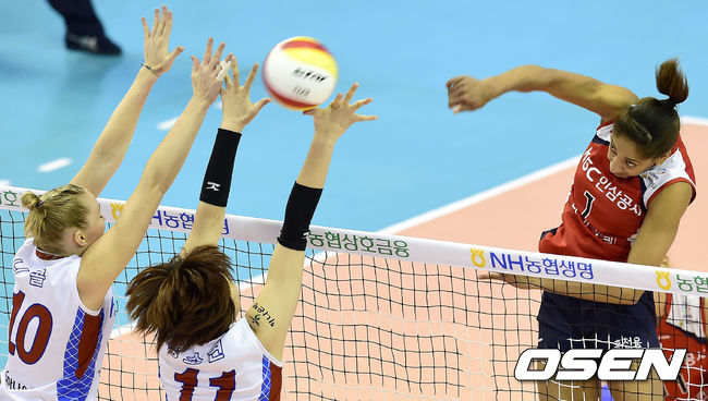 15일 오후 대전 충무실내체육관에서 열린 '2014-2015 NH농협 V-리그 여자부' KGC인삼공사와 한국도로공사의 경기, 1세트 인삼공사 조이스가 스파이크를 시도하고 있다.