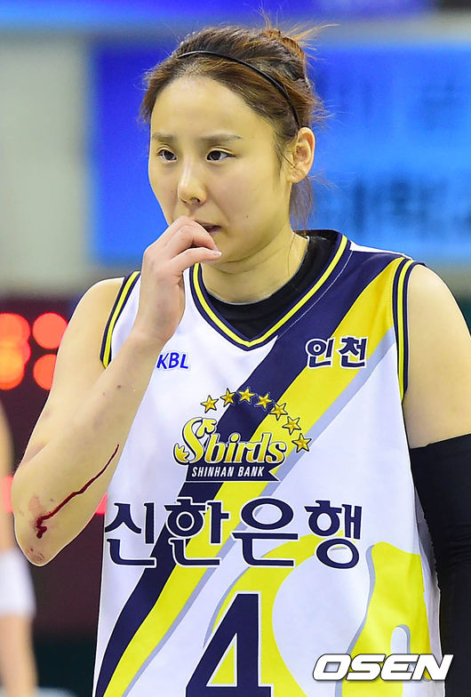 4쿼터, 파울을 당한 신한은행 최윤아가 자유투를 준비하던 중 팔꿈치에 피가 흐르고 있다./dreamer@osen.co.kr