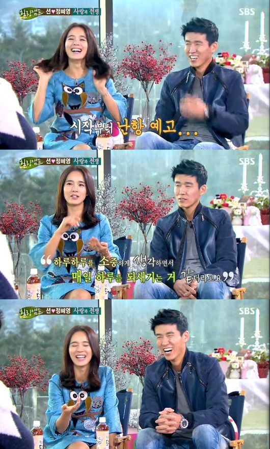 이에 정혜영은 "(남편이) 하루를 소중하게 생각하며 매일 되새기는 거 같다"며 "연애 때보다 지금이 더 좋다. 남편은 늘 똑같으면서 내가 느끼는 감정은 더 위로 간다"고 표현했다.