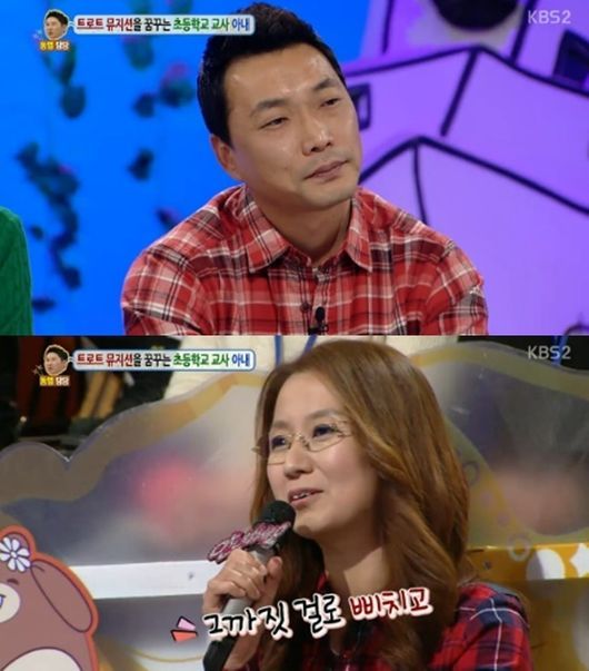 15일 방송된 KBS 2TV 예능프로그램 ‘대국민 토크쇼 안녕하세요’에는 트로트 뮤지션을 꿈꾸는 초등학교 교사 아내가 고민인 남편이 등장했다.