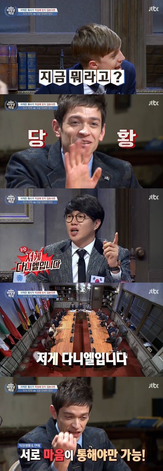 이날 다니엘은 “직장생활은 연애와 같다. 안 맞으면 갈아타면 된다”는 과감한 발언을 던졌다. 이에 출연자들은 “저게 다니엘입니다. 드디어 다니엘 실체가 드러났습니다”라고 응수해 웃음을 자아냈다.