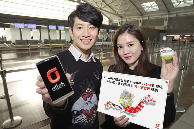 KT는 일본 커버리지 확대를 기념해 내년 1월 4일까지 'WiFi 자동로밍' 서비스 가입 시 50% 할인된 1000원에 제공한다. 또 올레 공식 페이스북에 안내된 일본 WiFi 자동로밍 커버리지 확대 이벤트 내용을 페이스북 친구에게 공유 혹은 해외 현지에서 찾은 WiFi 자동로밍 커버리지를 사진으로 찍어 댓글로 올리면 추첨을 통해 해외여행 상품권, 백화점 상품권, 파리바게뜨 케익 교환권 등 푸짐한 경품을 증정한다.