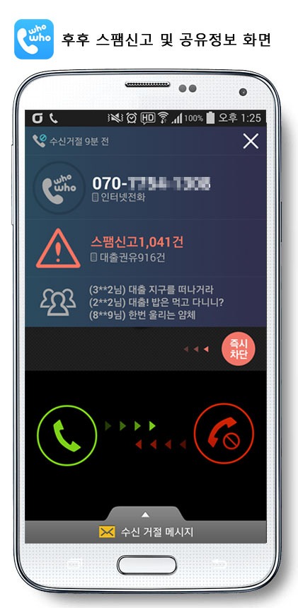 후후 서비스 초기에는 ‘스팸’, ‘보이스피싱’, ‘스미싱’ 등 기본적인 신고가 주를 이뤘지만, 다운로드 건수 1000만을 돌파한 시점에서는 보다 구체적이고 재미있는 정보들이 많이 공유되고 있으며, 이 정보들은 전화 수신 시 스마트폰 액정에 미리 보이기 때문에 스팸전화를 걸러내거나 모르는 번호에 대한 참고 자료 역할을 한다.