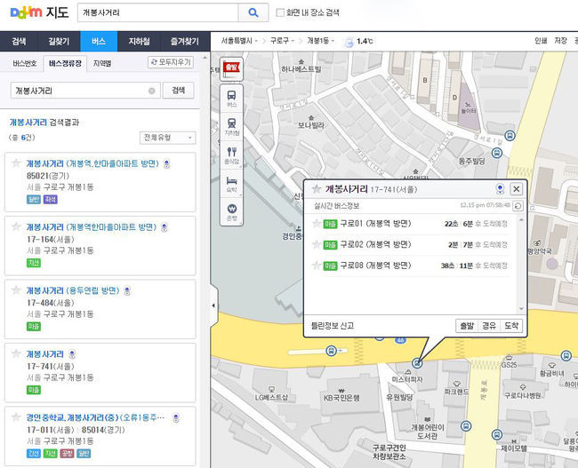 다음 지도가 마을버스 실시간 정보 서비스를 제공한다.
