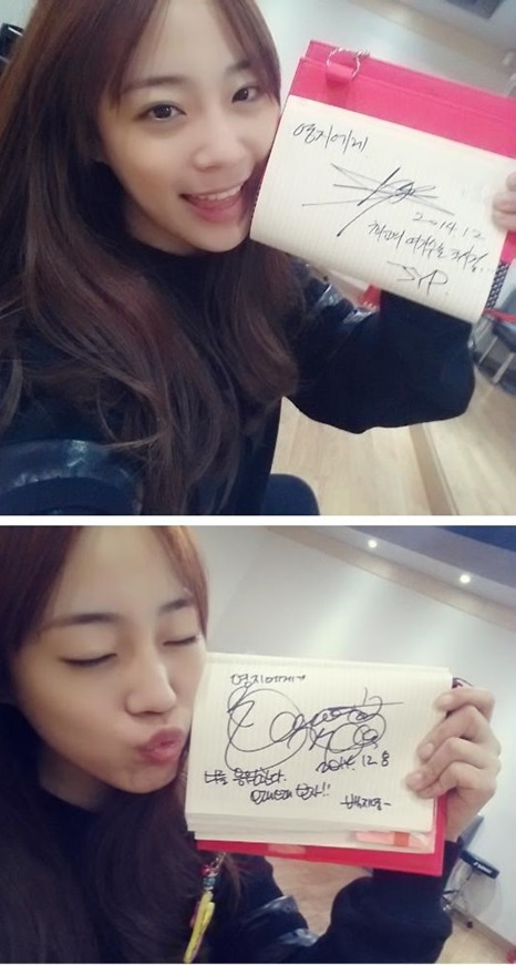카라 허영지가 선배 박진영과 백지영의 싸인에 기쁨의 인증샷을 공개했다.
