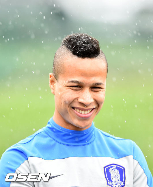 16일 오후 제주도 서귀포시민구장서 슈틸리케호가 훈련을 하고 있다. 강수일이 인터뷰를 마친 후 미소짓고 있다.