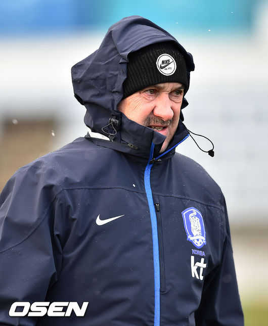16일 오후 제주도 서귀포시민구장서 슈틸리케호가 훈련을 하고 있다. 슈틸리케 감독이 선수들의 훈련을 보고 있다.