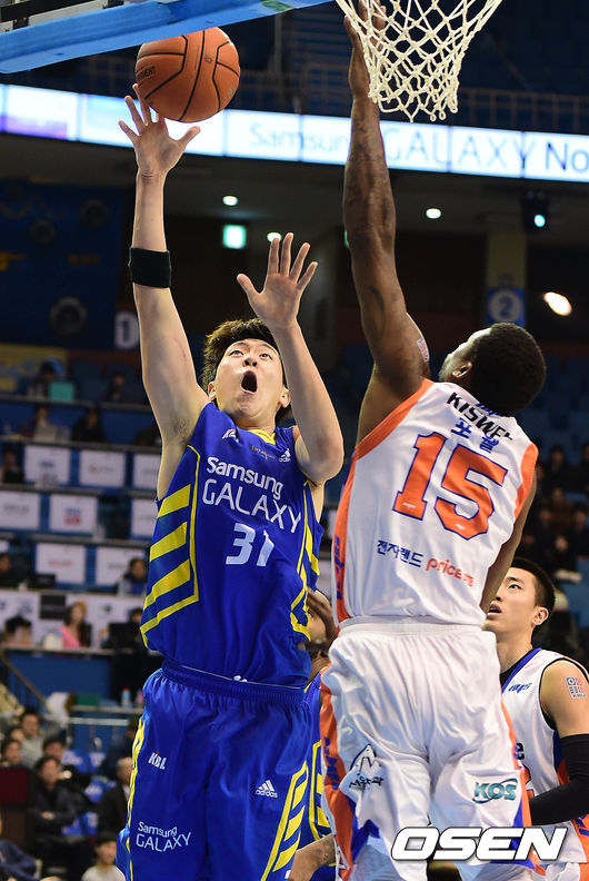 16일 오후 서울 잠실실내체육관에서 열린 '2014-2015 KCC 프로농구' 서울 삼성과 인천 전자랜드의 경기 2쿼터 김준일이 슛을 시도하고 있다.