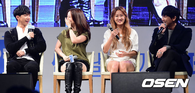 16일 오후 서울 광장동 악스코리아에서 진행된 영화 '오늘의 연애' 쇼케이스에서 이승기 문채원 소유 정기고가 미소짓고 있다.