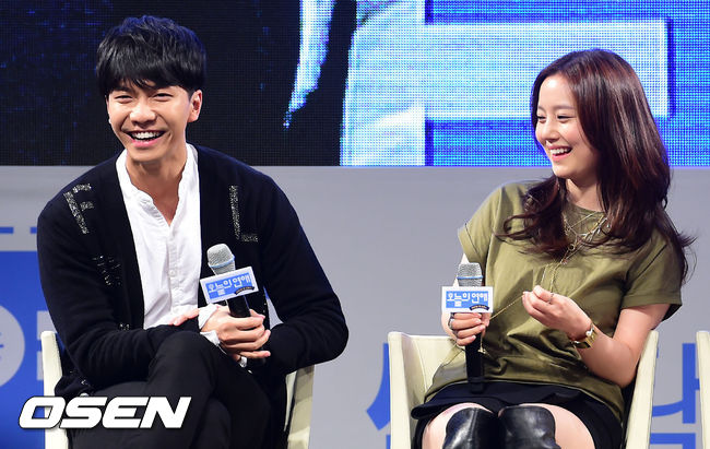 16일 오후 서울 광장동 악스코리아에서 진행된 영화 '오늘의 연애' 쇼케이스에서 이승기와 문채원이 미소짓고 있다.