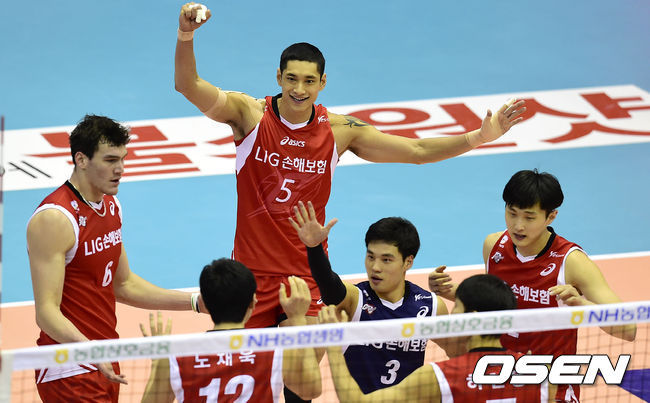 LIG손해보험은 16일 아산 이순신실내체육관에서 열린 2014-2015시즌 NH농협 V리그 남자부 3라운드 우리카드와 경기에서 3-2(25-20, 24-26, 33-35, 25-23, 15-11) 승리를 거뒀다. 이날 승리로 3연패를 탈출한 5승 10패(승점 15)를 거두며 6위를, 우리카드는 9연패의 늪에 빠져 최하위에서 헤어나오지 못했다.