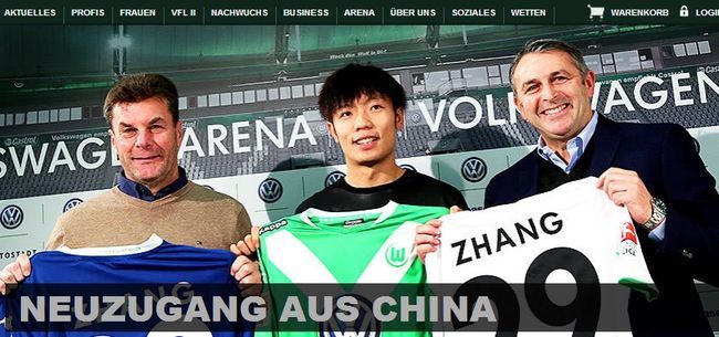 중국 A대표팀의 미드필더 장시저(23)가 독일 분데스리가 볼프스부르크 유니폼을 입었다.