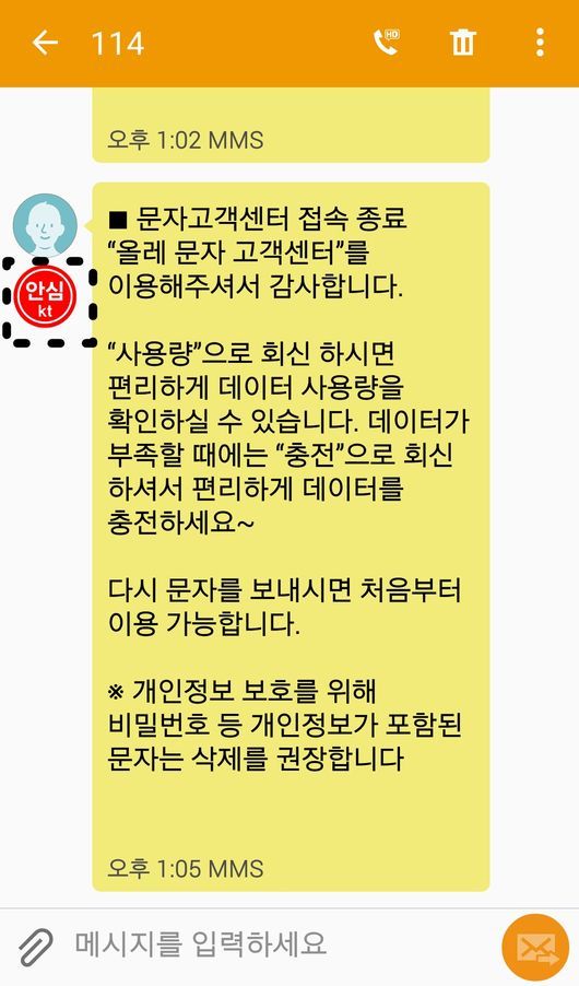 인증된 기업이 발송하여 문자 내용이 정상적인 경우에만 표시되는 '안심'마크는 KT를 제외한 다른 대상이 임의적으로 접근 및 수정할 수 없어 KT 또는 특정 기업 사칭을 원천적으로 차단할 수 있다.