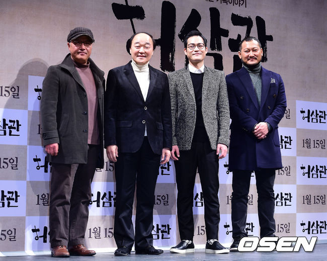 17일 오전 서울 압구정CGV에서 진행된 영화 허삼관(하정우 감독) 제작보고회에서 이경영 장광 김성균 정만식이 포토타임을 하고 있다.