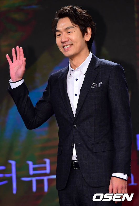 배우 김태우가 대개편 설명회에 참석해 포토타임을 갖고 있다.