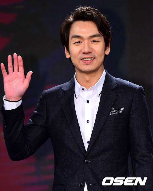 배우 김태우가 대개편 설명회에 참석해 포토타임을 갖고 있다.