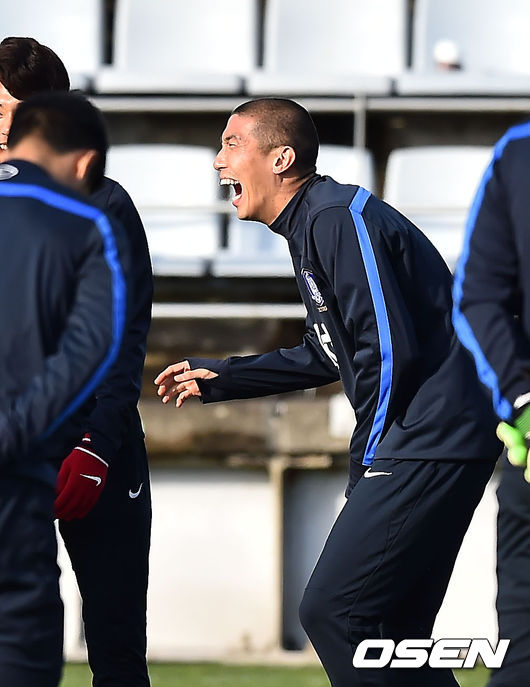 17일 오후 제주도 서귀포시민구장서 슈틸리케호가 훈련을 하고 있다. 차두리가 훈련중 환하게 웃고 있다.