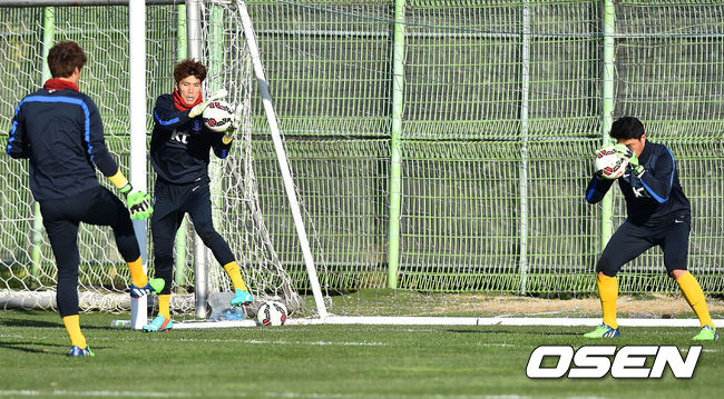 17일 오후 제주도 서귀포시민구장서 슈틸리케호가 훈련을 하고 있다. 김진현과 정성룡이 수비훈련을 하고 있다.