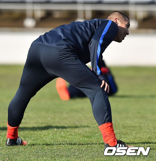 17일 오후 제주도 서귀포시민구장서 슈틸리케호가 훈련을 하고 있다. 차두리가 몸을 풀고 있다.