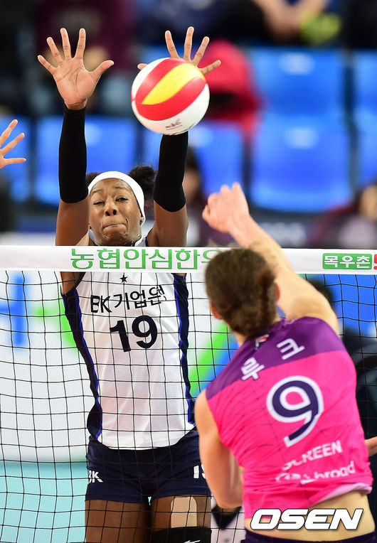 IBK 데스티니가 흥국생명 루크를 상대로 블로킹을 성공하고 있다. / youngrae@osen.co.kr